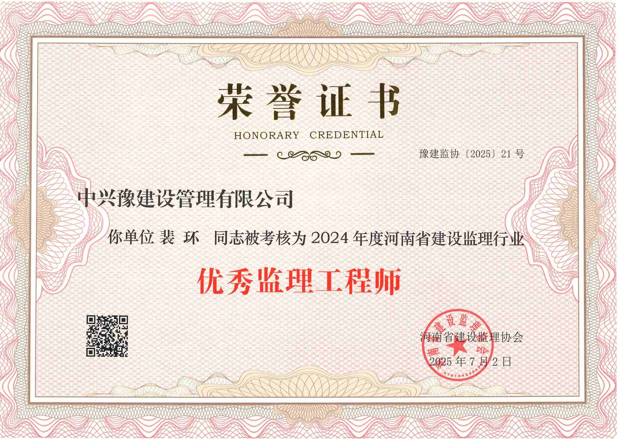 近日,河南省建設(shè)監(jiān)理協(xié)會(huì)發(fā)布了《關(guān)于公布2024年度會(huì)員單位和從業(yè)人員考核結(jié)果的通知》。中興豫建設(shè)管理有限公司榮獲“2024年度優(yōu)秀工程監(jiān)理企業(yè)”。
